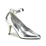 √√√4 Inch Sexy Wide Width Pump Shoes High Heel Shoes With Ankle Strap Silver Features
